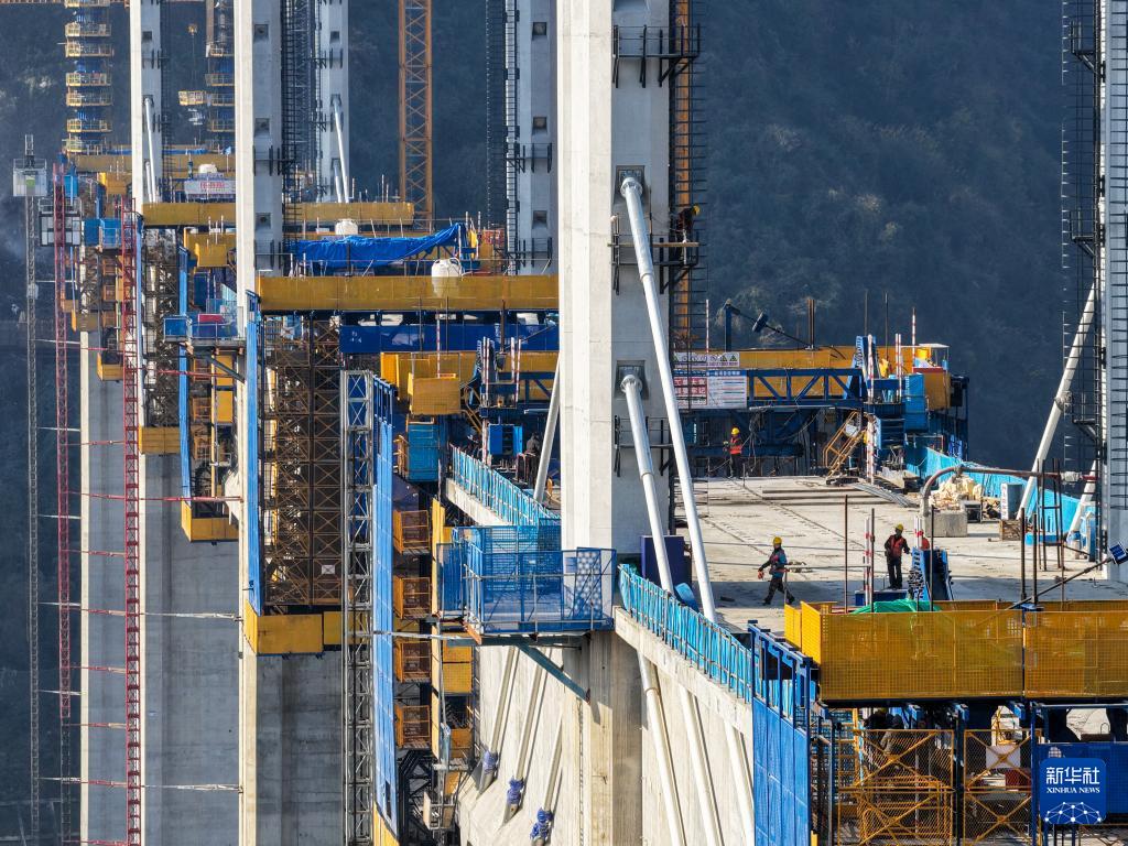 這是12月7日拍攝的西渝高鐵任河特大橋建設現場(無人機照片)。