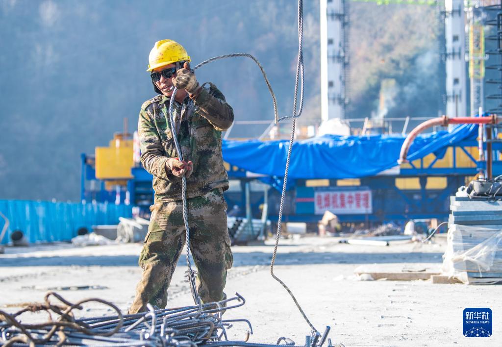 12月7日,工人在西渝高鐵任河特大橋建設現場施工作業。