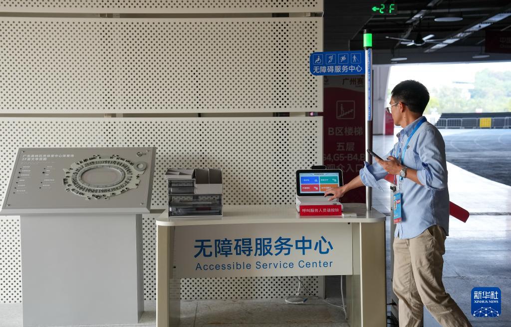 這是廣東奧林匹克體育中心體育場的無障礙服務中心(12月7日攝)。