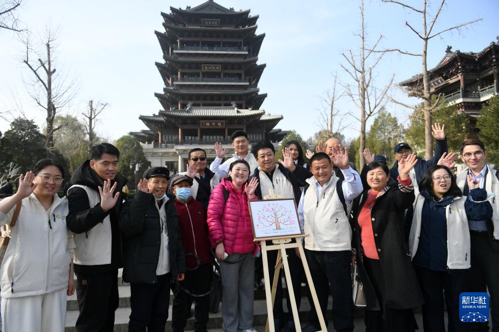 12月7日,人工心臟植入手術康復者和濟南市中心醫院醫務人員在大明湖健康行活動上合影。