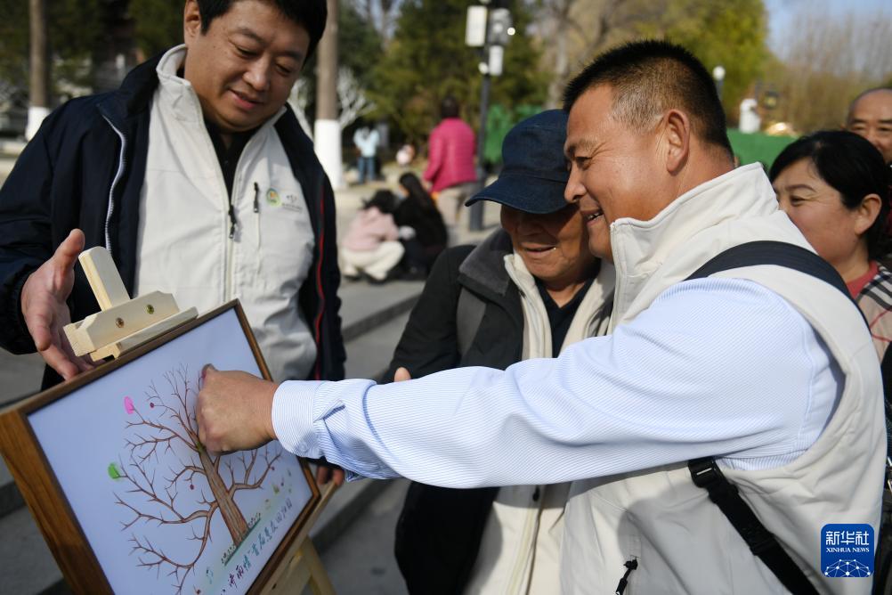 12月7日,山東省首例自主完成的人工心臟植入手術患者李樹雙(前右)在大明湖參加健康行活動時留下紀念手印。