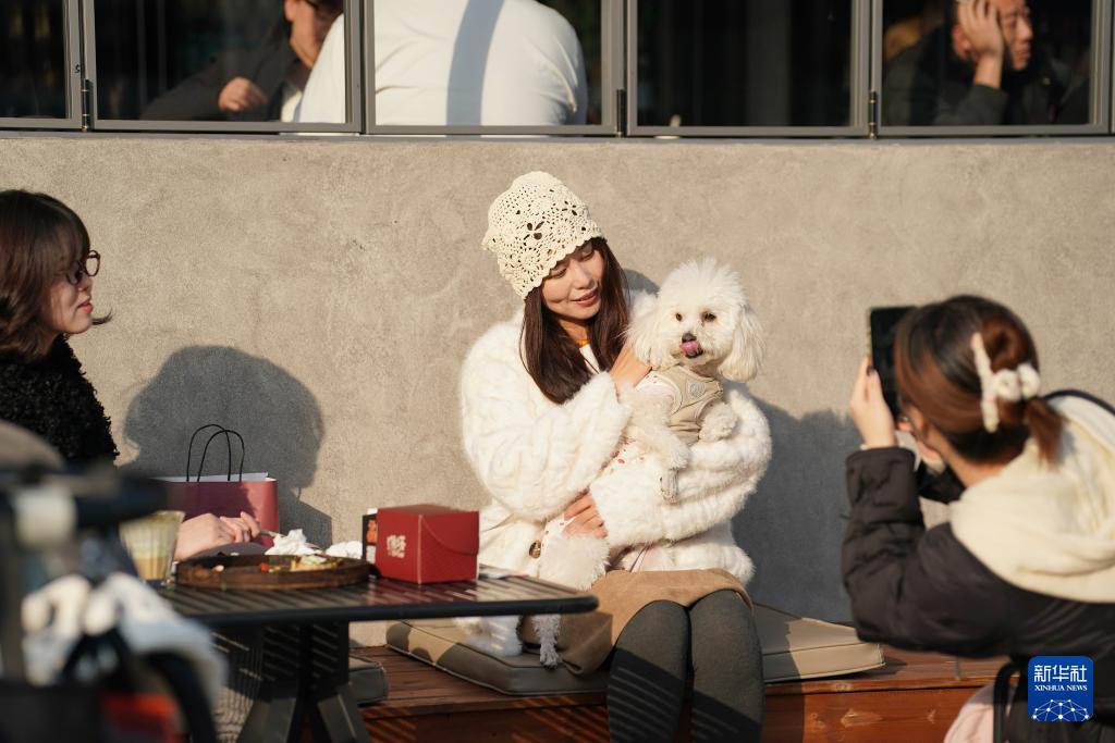 12月4日,游人在西安時光文化公園消費休閑。這座公園是由西安國營第一鐘表機械廠舊廠區改建而來的。