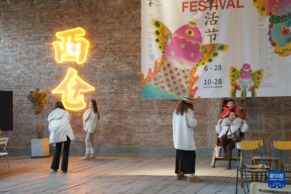12月6日,游人在西安西倉市集文創(chuàng)公園一處文化空間內(nèi)拍照。這座公園由位于西安市蓮湖區(qū)的老西倉市集改造而來。