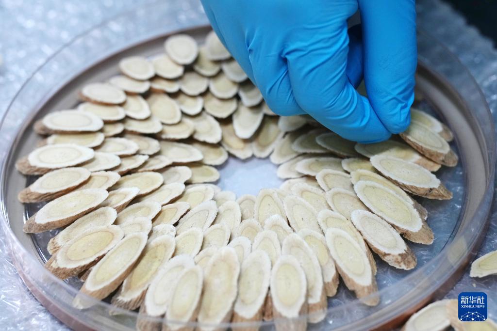 工作人員在寧夏固原市隆德縣一家藥材加工企業(yè)包裝黃芪(12月6日攝)。