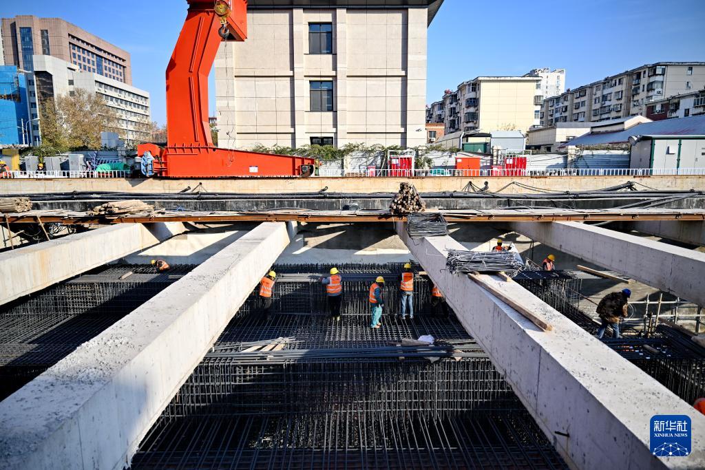 12月9日,中鐵二十局工人在石家莊市地鐵5號線一期03工區施工現場捆綁鋼筋。