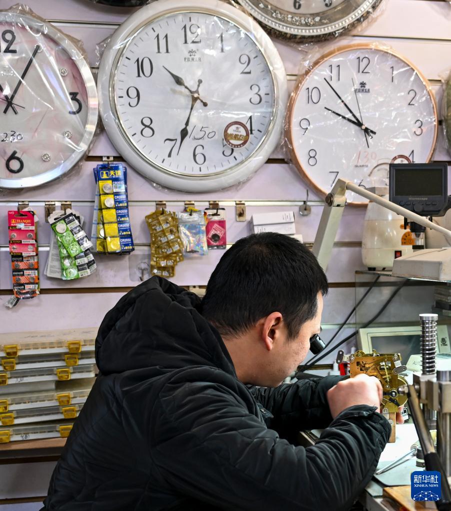 12月9日,商戶在修理鐘表。