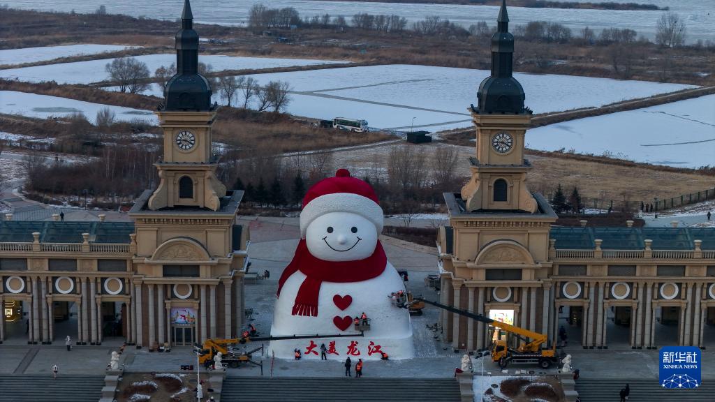 12月15日,哈爾濱市群力音樂公園大雪人完成主體建設,進入到最后的細節打磨階段。大雪人設計身高19米、長14米、寬11米,總用雪量超過3000立方米,比往年增加1200立方米,為歷年之最。