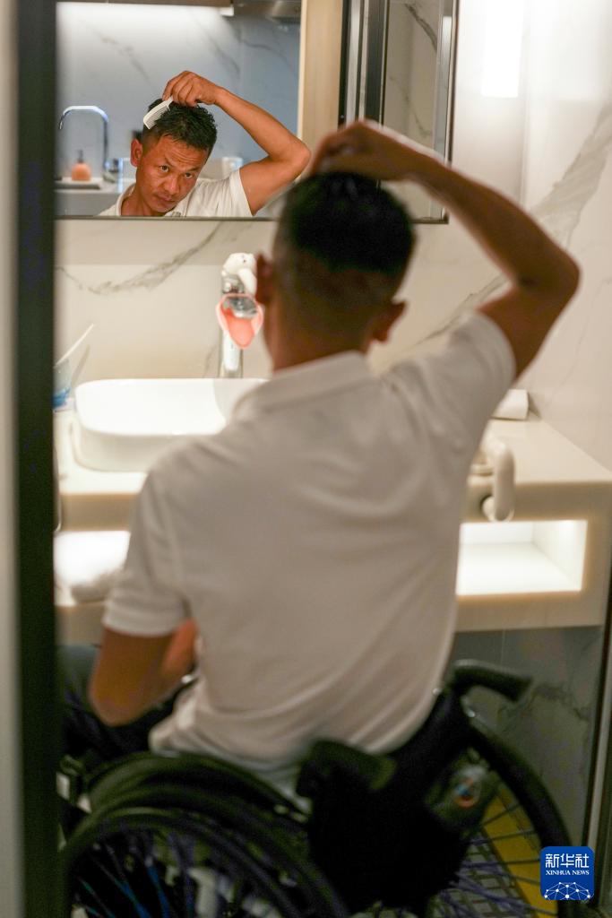 12月12日,西藏輪椅籃球隊球員旦增使用運動員酒店的無障礙洗手間。旦增表示“從酒店各個細節可以看出,工作人員是真正懂得我們殘障人士的需求?!?/span>
