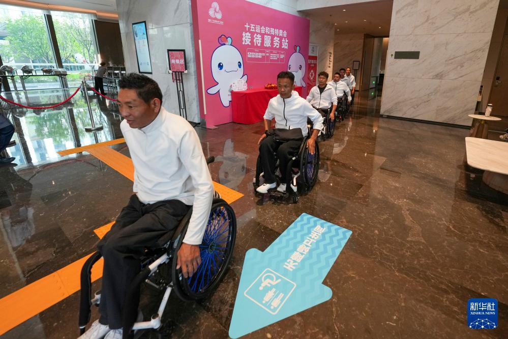12月12日,西藏輪椅籃球隊球員在運動員酒店用完早餐后,去乘坐無障礙巴士前往賽場。