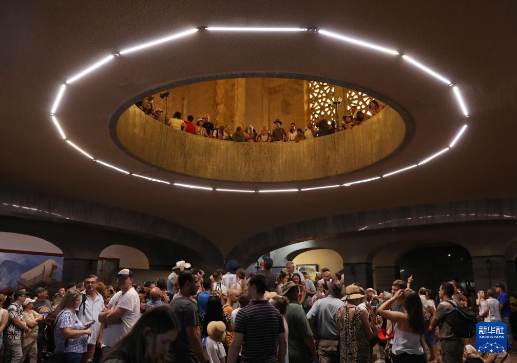 12月16日,人們聚集在南非比勒陀利亞的先民紀(jì)念館內(nèi)等待正午12點(diǎn)的陽(yáng)光照在該館的紀(jì)念碑上。