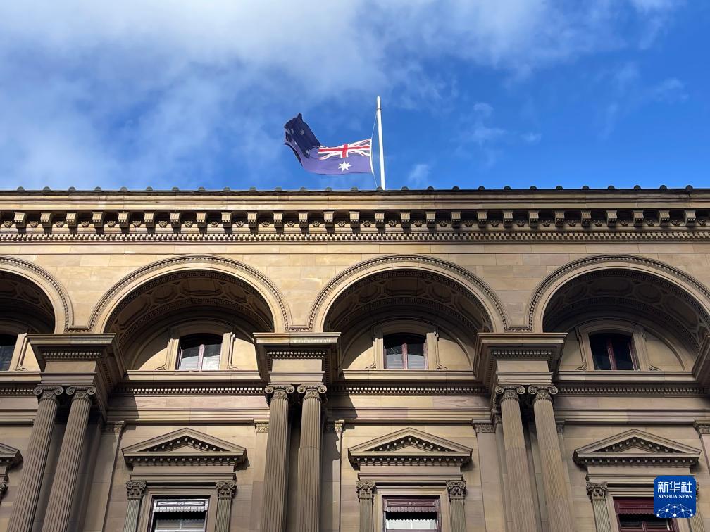 12月15日,在澳大利亞墨爾本,老國庫大樓降半旗,悼念悉尼邦迪灘槍擊事件遇難者(手機照片)。