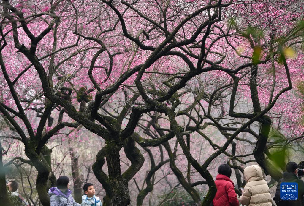 游客在杭州靈峰探梅景區游玩(2月23日攝)。
