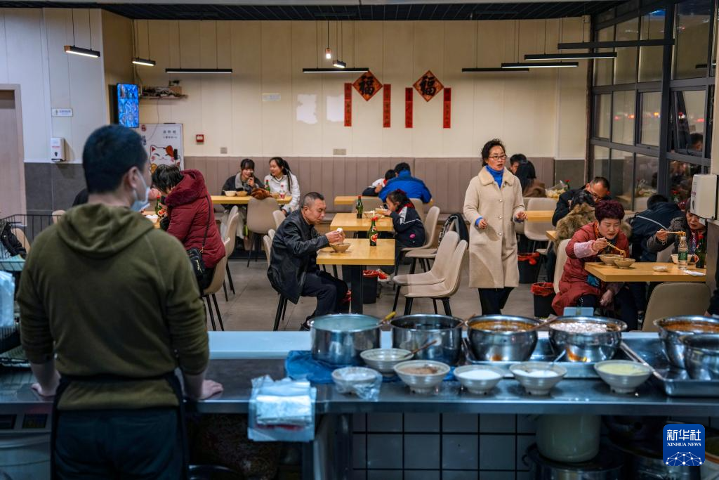 12月12日,在四川省廣元市一家涼面館,工作人員在制作涼面。