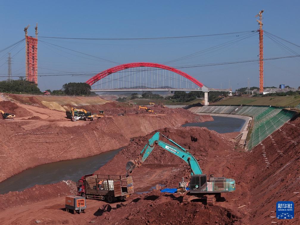 這是平陸運河陸屋段建設現場(11月12日攝,無人機照片)。